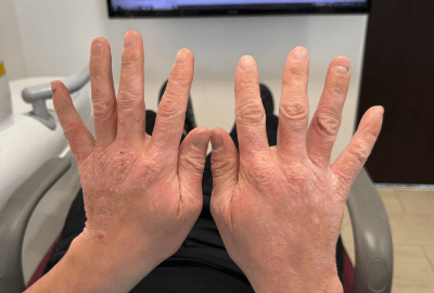 全身に出ている発疹や皮膚症状の原因が口の中の金属にあると考え、口腔内の金属を全て外してほしいというご希望でした。