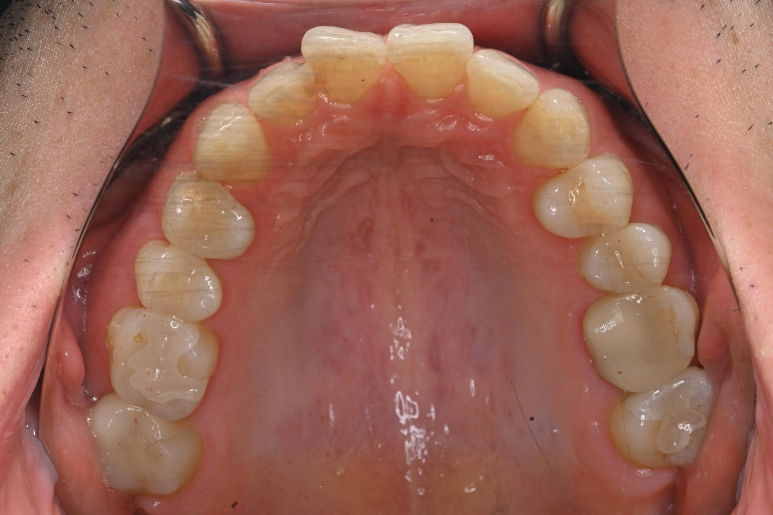 口腔内には多数の銀歯(銀合金)が確認されました。患者様は過去に多くの虫歯治療を受けており、そのほとんどが保険適用内の銀合金で修復されていました。